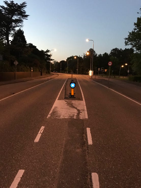 Onze verkeerszuilen (BM18-BM19) zijn voorzien van interne LED-verlichting; zonnecellen en een accu!